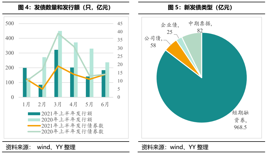 1)2021上半年新發(fā)債情況