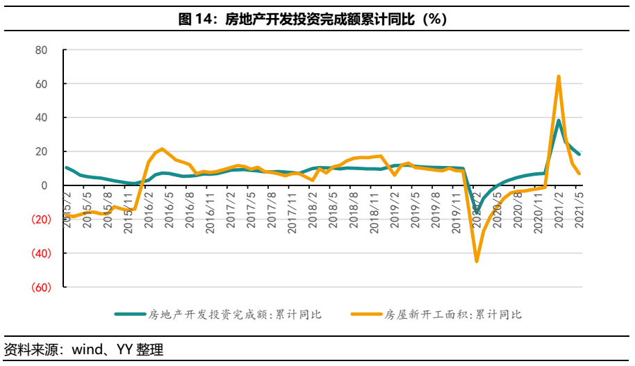 基建方面,進(jìn)入2021年以后基建投資累計(jì)同比增速明顯放緩,另外從資金來(lái)源的角度,基建投資也在退溫。首先與基建相關(guān)的專項(xiàng)債資金占比下降,2021年上半年新增專項(xiàng)債10144億元,完成全年的28%,從新增專項(xiàng)債具體投向的絕對(duì)數(shù)來(lái)看,投向交通運(yùn)輸和市政建設(shè)的金額分別為2722.8億元和4349.7億元,去年同期為6808億元、8785億元;相對(duì)數(shù)來(lái)看,2021年上半年投向交通運(yùn)輸+市政工程+生態(tài)環(huán)保+能源基礎(chǔ)設(shè)施的基建相關(guān)地方債占比為53.4%,去年同期為64.7%。