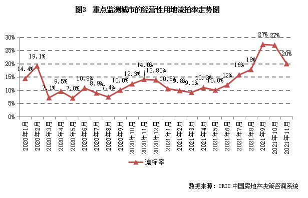 2021年11月處于二、三輪集中土拍的交接期,月內共有深圳、無錫等6個重點城市拍地。