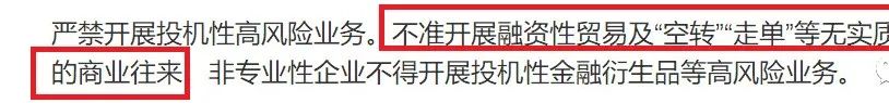 在此之前的2021年5月28日,河南省國資委、財政廳等五部門聯合召開全省國有企業債券風險防控工作視頻會議,信息量非常大。會議提出要“嚴禁融資性貿易業務,嚴禁融資性貿易和空轉走單等虛假貿易業務”。