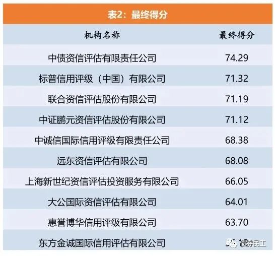 2019-2020年的評價結果對比來看,中誠信國際的最終排名相比2019年的第二名下降幅度較大;中證鵬元的排名相比2019年也有了一定的提升;東方金誠的排名下降幅度比較大。目前安融等新進入評級公司暫未在排名中有體現,主要原因可能是2020年尚未正式開展業務。