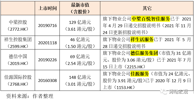 (二)均為港股上市地產企業,旗下2家物業公司已上市、2家待上市