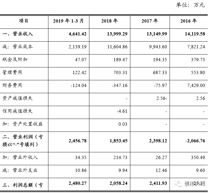 截取項目公司2016年至2019年1-3月的利潤表數據: