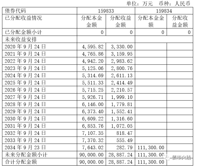 公募基金份額不能分級,理論上類REITs端的優先劣后在公募端很難直接嫁接。高速公路資產隨著接近特許經營期限終點,本身資產價值也在降低,因此資產支持證券肯定有本金攤還,滬杭甬高速REITs的還本付息安排(優先級票面利率3.70%)為: