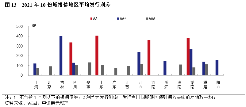 6. 10月份城投債發(fā)行利率中樞下行,利差分化