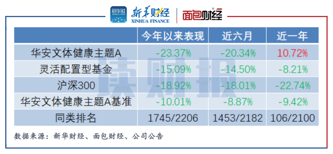 華安文體健康靈活配置混合(以下簡稱“華安文體健康”)堪稱2021年的“黑馬”基金,當(dāng)年跑出69.78%的收益。然而,截至5月17日數(shù)據(jù),基金年初以來凈值下跌23.37%,跑輸業(yè)績基準(zhǔn)超10%,在同類排名中已處于末尾梯隊。