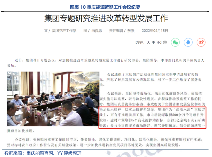 事件:2022年4月11日,據重慶破產法庭消息,重慶市能源投資集團有限公司(以下簡稱“重慶能源”)等16家企業以已具備破產原因但具有重整價值及可行性為由,分別向重慶市第五中級人民法院申請破產重整,并同時提出預重整申請。
