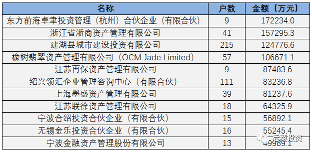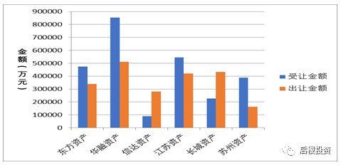 上表所示活躍受讓主體受讓資產比重近50%。在東方前海資產、浙商資產、橡樹以及地方政府資本帶動下,二級投資機構進一步活躍。
