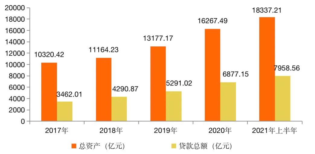統(tǒng)計數(shù)據(jù)顯示,寧波銀行的資產規(guī)模從2017年的10320.42億元增長至2021年上半年的18337.21億元,增幅達到近八成。與此同時,貸款總額也從3462.01億元增長至7958.56億元,增幅實現(xiàn)1.3倍,可見近年來保持穩(wěn)健的增長態(tài)勢。