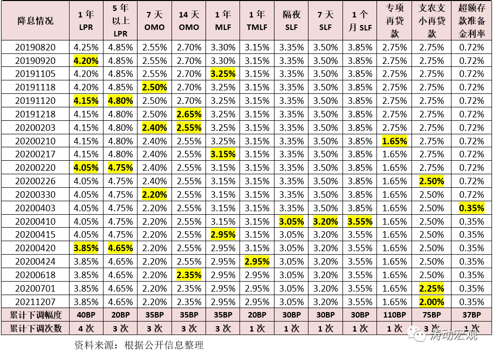 (一)自2019年8月推出LPR新報價機制以來,央行調(diào)降將近30次包括LPR在內(nèi)的相關政策利率,具體來看1年期LPR調(diào)降4次、5年期LPR調(diào)降3次、7天OMO利率調(diào)降3次、14天OMO利率調(diào)降3次、1年期MLF利率調(diào)降3次、1年期TMLF利率調(diào)降1次、各期限SLF利率分別調(diào)降1次、1年期專項再貸款利率調(diào)降1次、支農(nóng)支小再貸款利率調(diào)降3次、再貼現(xiàn)利率調(diào)降1次、金融穩(wěn)定再貸款利率調(diào)降1次以及超額存款準備金利率調(diào)降1次。