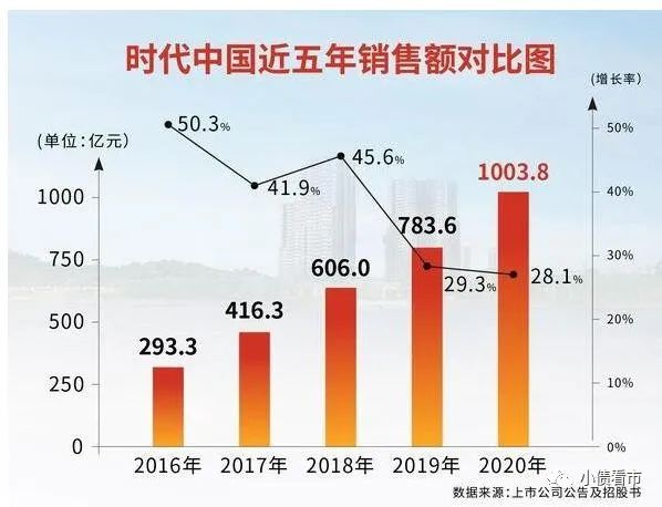 2020年,時代中國控股實現(xiàn)合同銷售1003.81億元,同比增長28.1%,正式跨入“千億俱樂部”。