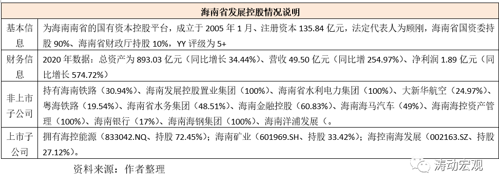 (3)海南省發(fā)展控股成立于2005年1月(注冊(cè)資本為135.84億元),法定代表人同樣為顧剛,目前海南省國(guó)資委持股90%、海南省財(cái)政廳持股10%。海南省發(fā)展控股為海南省的國(guó)有綜合性投資控股平臺(tái),旗下?lián)碛泻D系V業(yè)、海控南海發(fā)展以及海控能源等三家上市主體。