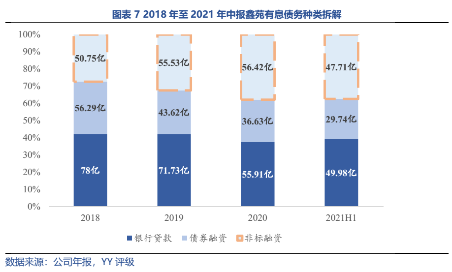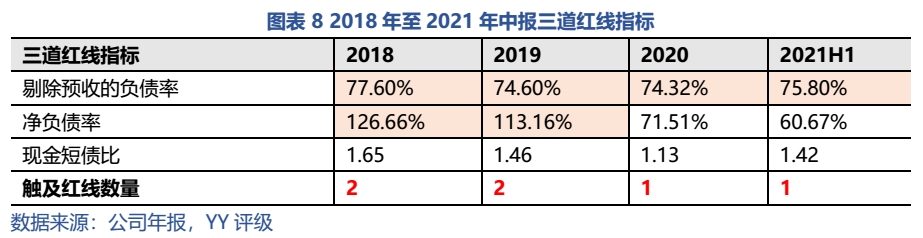 表內有息債務總體收縮,但非標規模高居不下,嚴重拖累融資成本,若繼續惡化則極可能面臨資金鏈危機。此外,表外負債藏匿規模較大,債務明顯出表,調整后觸及兩條紅線,負債情況堪憂。