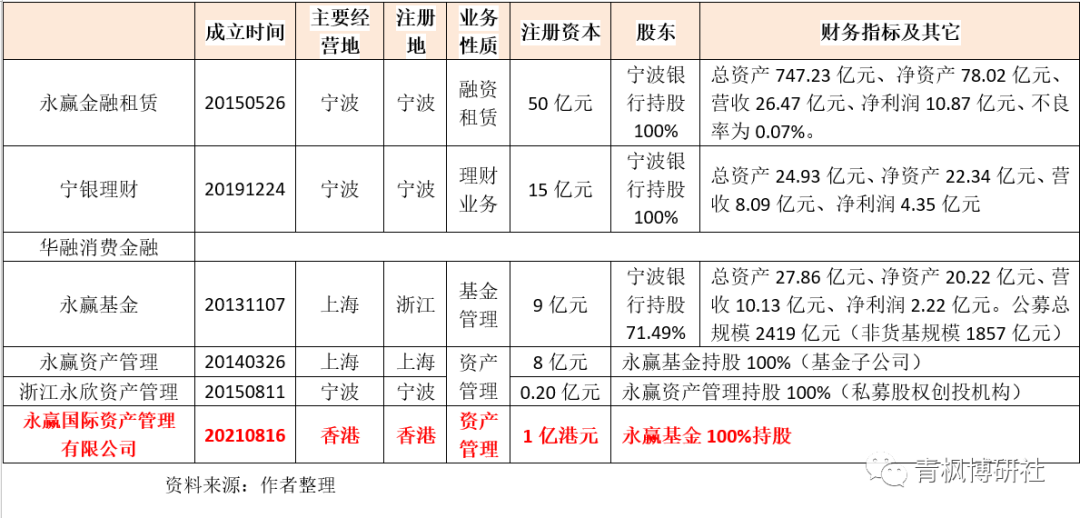 1、2021年8月16日,證監(jiān)會(huì)批復(fù)同意永贏基金在香港全資設(shè)立永贏國(guó)際資產(chǎn)管理,意味著寧波銀行通過(guò)永贏基金實(shí)現(xiàn)了在香港的布局。