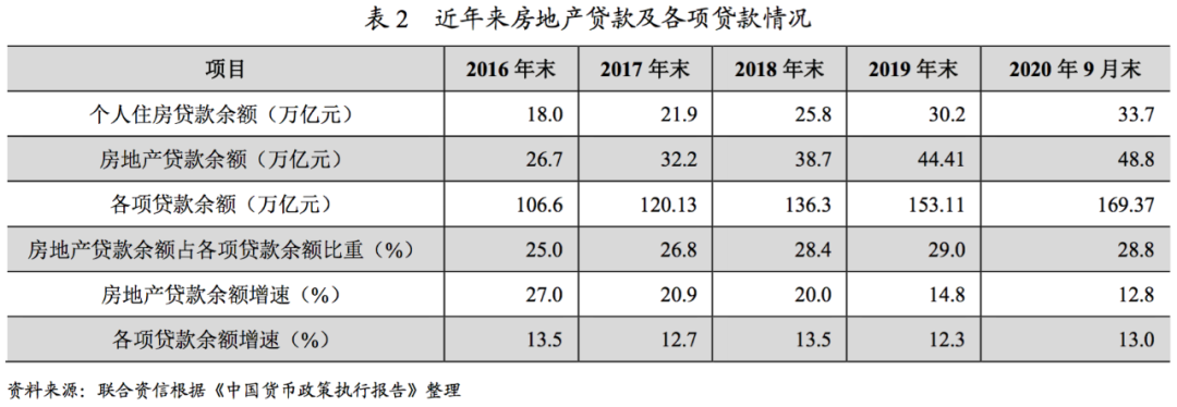 根據表2,2016-2020年9月末,房地產貸款余額保持增長,但增速逐步下降,逐步向各項貸款余額增速靠攏,同時中國人民銀行金融市場市場司司長2021年1月15日表示,2020年房地產貸款增速8年來首次低于各項貸款增速,新增房地產貸款占各項貸款比重從2016年的44.8%下降到2020年的28%。我們認為此次《通知》的出臺,意在控制房地產貸款增速及房地產貸款在各項貸款中的占比,而不是壓降貸款總規模。